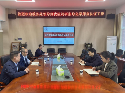 随后,教务处领导在公司领导的陪同下深入到化学系402办公室指导自评报告撰写工作,化学系副主任刘华荣也向领导汇报了师范认证工作的推进情况,并反映了过程中遇到的困难,例如中学兼职导师及双导师聘请的情况及与中学公司之间交流合作推进情况等,并表示在公司及公司的大力支持下,大家有信心克服困难,撸起袖子加油干,坚决圆满完成任务。