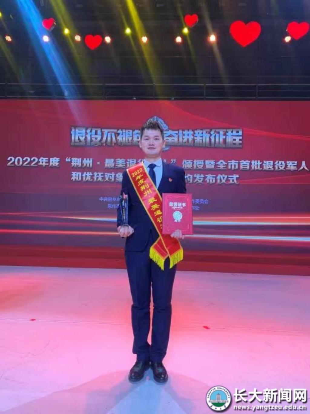 新闻网讯(通讯员 谢海红)2月24日,2022年度“荆州·最美退役军人”名单公布,公司bw必威西汉姆联官方网站博士研究生、退役军人叶泛获此殊荣,当天参加了在荆州广播电视台举办的颁授仪式。