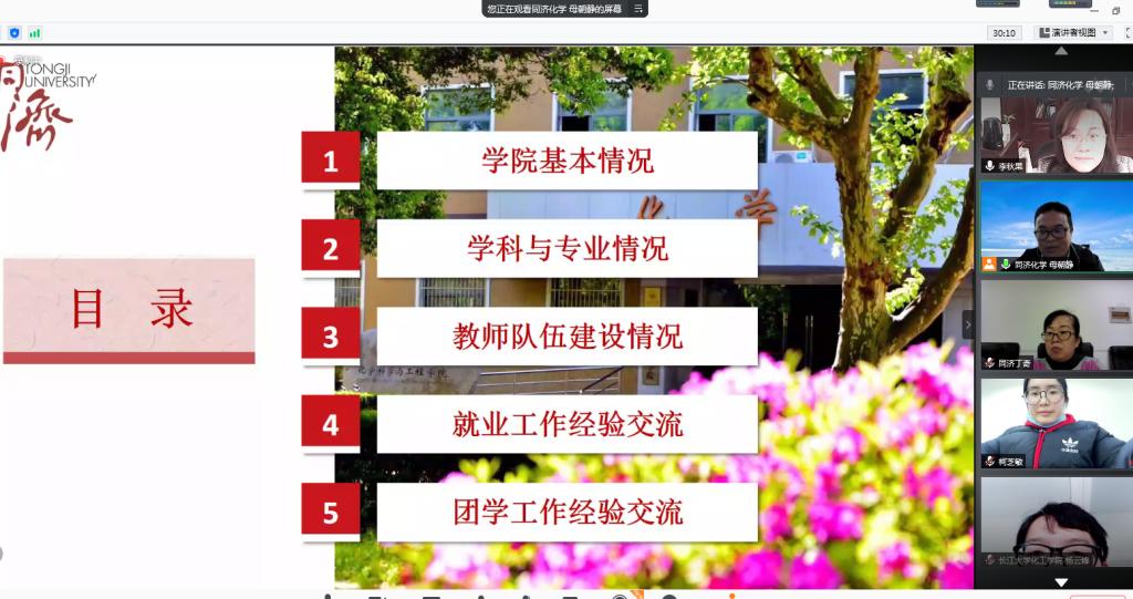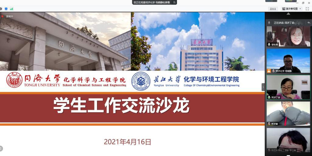 (通讯员 王娜)4月16日13:00,bw必威西汉姆联官方网站与同济大学化学科学与工程公司以视频方式开展员工工作交流沙龙,两院分管学工的党委副书记、全体辅导员参加会议,本次交流活动由同济大学化学科学与工程公司母朝静书记主持。