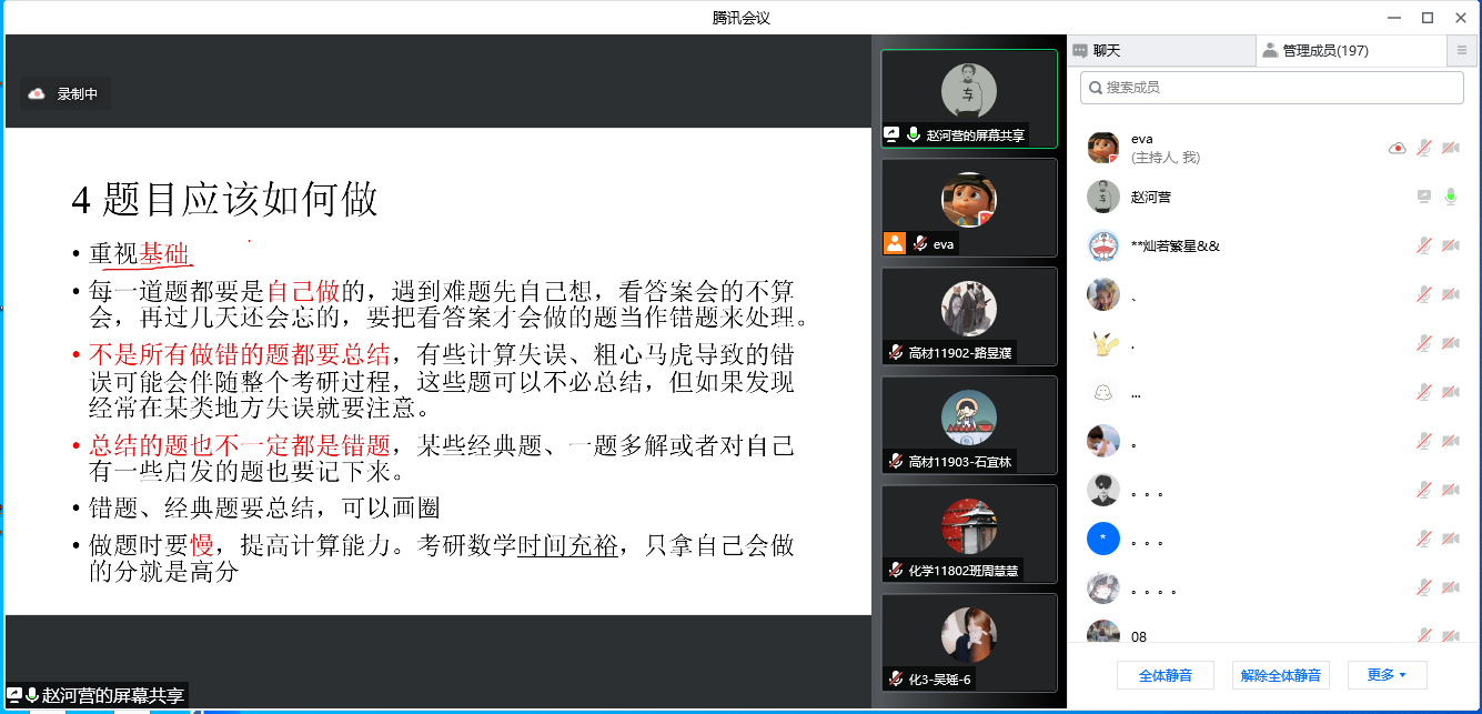会议初始,负责公司研究生招生的石东坡教授给同学们分析了疫情之下严峻的考研形式,同时解读了公司考研的相关政策,欢迎同学们报考长大研究生。接下来,今年成功录取本校研究生的钟建铭同学分享了自己的所感所想,他结合自身情况给大家分析了为什么要考研、为什么选择报考bw必威西汉姆联官方网站以及怎样备考等内容。