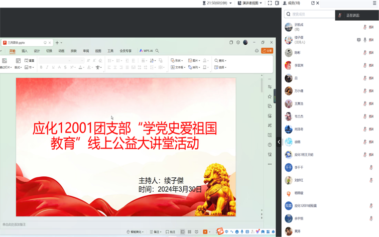 本次“学党史爱祖国”公益讲堂主要邀请中央党校中共党史教研部教授、博士生导师祝彦,北京师范大学马克思主义公司教授、博士生导师马振清,中共中央党校教授、博士研究生导师胡岩三位专家教授为高校青年作“学党史爱祖国教育”专题报告,一节节生动的思政大课,使同学们对中国共产党从成立到发展壮大的光辉历程有了更深刻的理解。