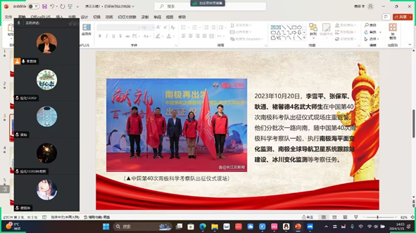 本科生李嘉翔说:“青年员工要继承极地人的科学精神,铭记百年初心使命,肩负起新时代的责任与担当!”;本科生邓奥说:“在今后的学习中要砥砺奋斗,钻研科学知识、练就过硬本领,经风雨、见世面、长才干,在现代化强国建设、民族复兴的火热实践中贡献青春力量!”。