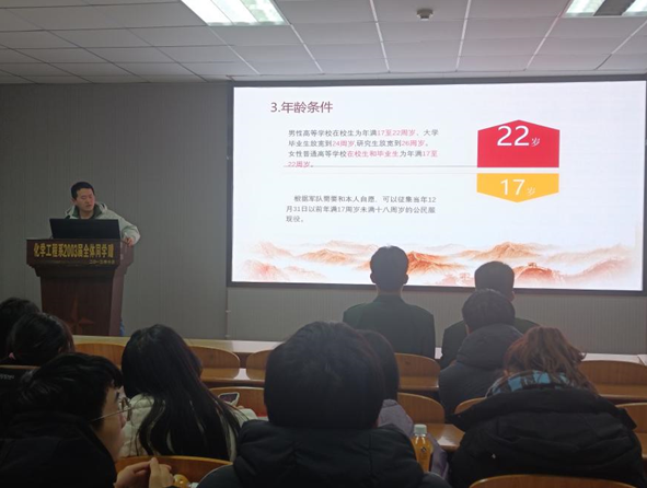 (通讯员 龙怡 聂琳珊)为做好2024年春季征兵宣传工作,帮助老员工了解、掌握应征入伍政策,激发员工参军入伍热情,12月21日晚七点,bw必威西汉姆联官方网站于14教北201举行征兵宣讲活动。本次活动由辅导员周学素老师主持。