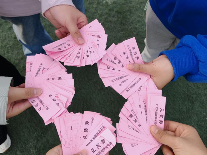 此次运动会设置了兑奖环节。每位同学完成一个项目,即可获得一张兑奖券。同学们拿着兑奖券可以在兑奖处兑换自己喜欢的奖品,竞相发朋友圈分享自己的快乐。