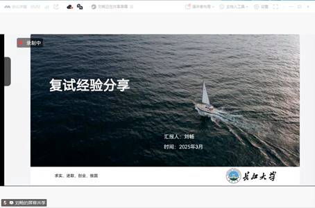 (通讯员 许多多)为进一步帮助考研学子了解复试流程,提高复试成功率,3月4日晚上,公司通过线上线下相结合的方式,在14教北201举办考研复试经验分享会。党委副书记杨会军,辅导员王娜出席会议。