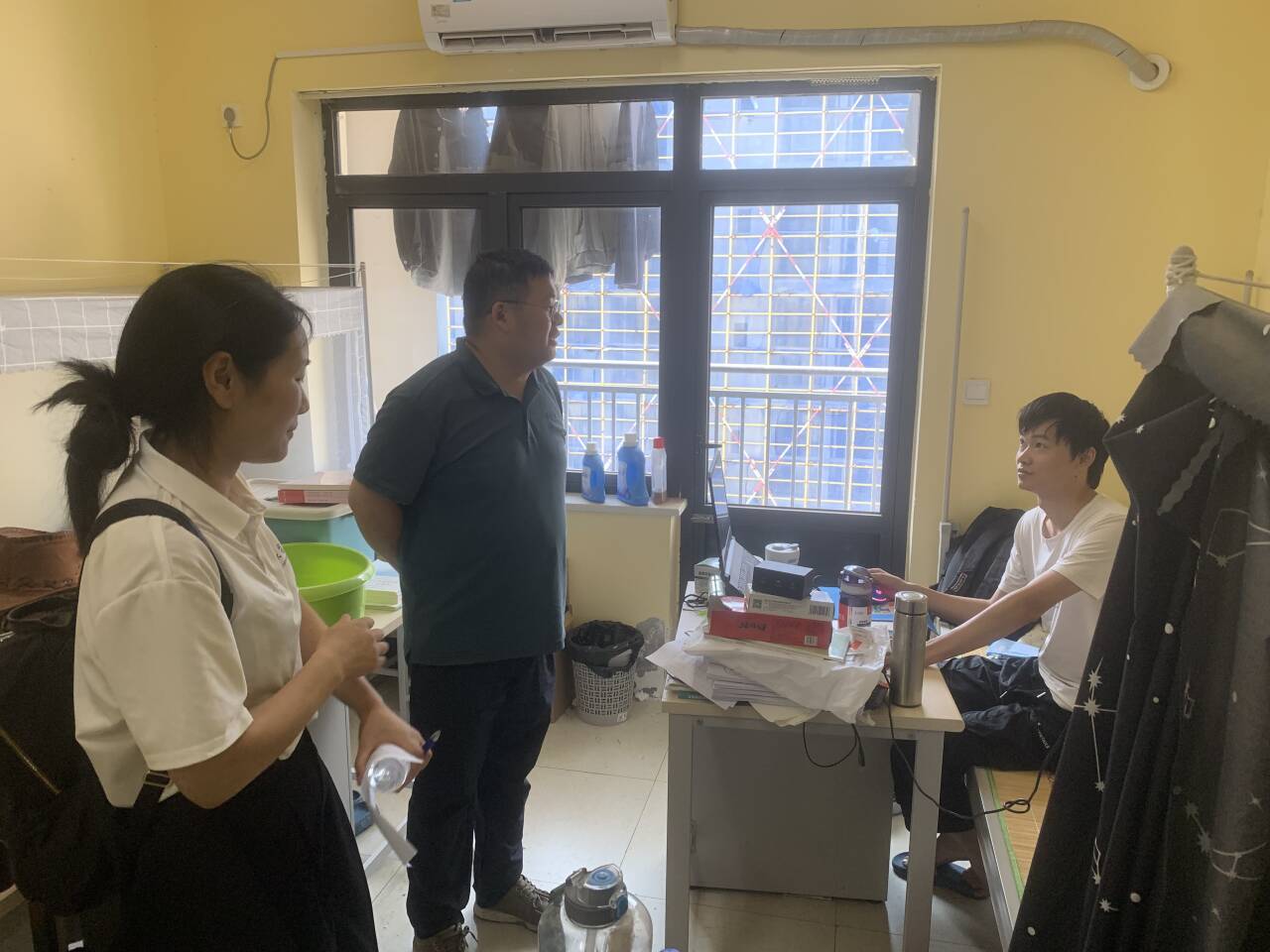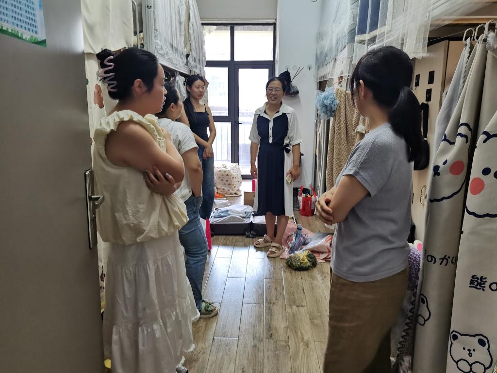 每到一间宿舍,公司老师们与毕业生亲切交谈,详细了解毕业去向、就业情况及未来规划。对于已就业同学,勉励他们在工作岗位上踏实肯干,将理论知识运用到实践中去;鼓励继续深造的同学,希望他们在学术道路上保持探索精神,勇攀学术高峰;对暂未落实去向的员工,结合当前的就业形势,给予职业规划指导,并承诺“就业帮扶通道永不关闭”。同时,老师们反复强调证件保管、行李托运规范,提醒员工警惕租房诈骗和求职陷阱。辅导员同步检查宿舍水电安全,叮嘱离校前办理退宿手续,保障“文明、安全、有序”离校。