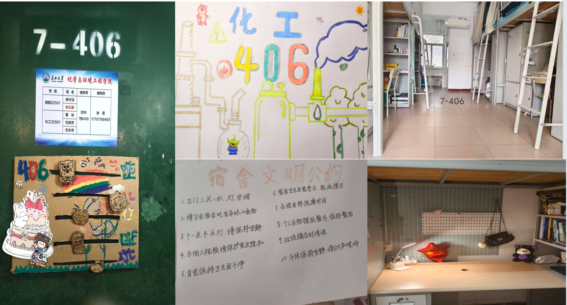 活动自启动以来,全院同学热情高涨、创意迸发,以青春朝气和无限巧思为寝室文化建设注入蓬勃活力。各寝室成员齐心协力,在合作中激发灵感:有的以化工元素和成员兴趣爱好为灵感,精心设计出独具匠心的“创意门牌”;有的共同制定并绘制“寝室公约手抄报”,凝聚共识、规范行为;还有的秉持节约环保理念,巧妙利用废旧物品开展“变废为宝”行动,打造出整洁美观、温馨舒适的寝室空间。一道道门牌、一张张手抄报、一件件再生作品,不仅美化了生活环境,更成为增进情谊的“催化剂”,有效提升了同学们的动手能力与团队协作意识。