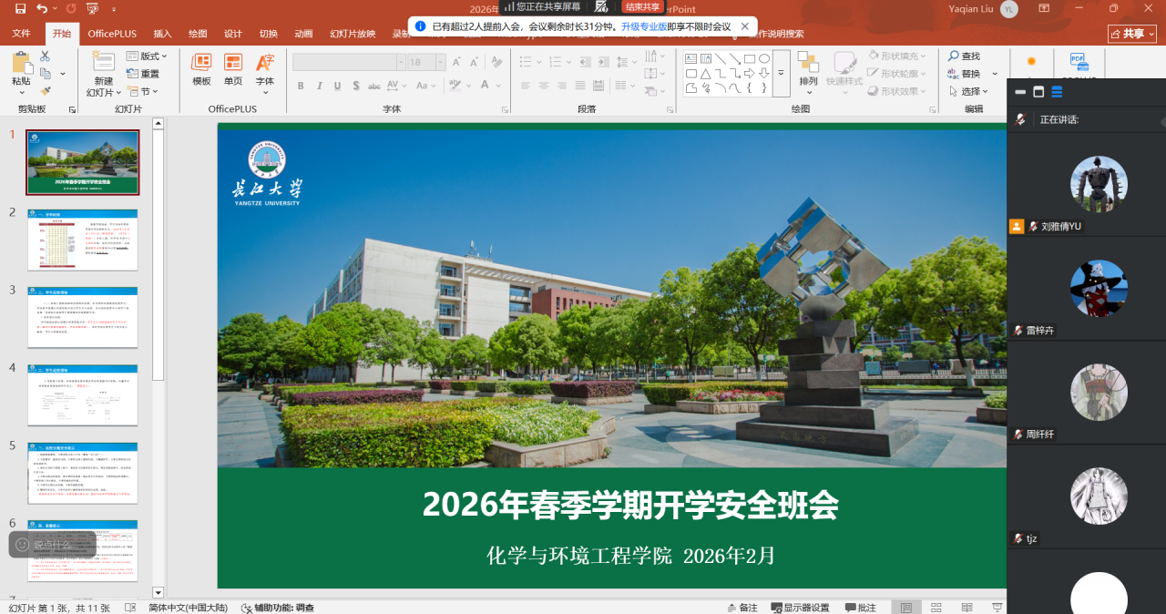 针对成长发展与就业规划,班会强调,新学期既是学习提升的关键阶段,也是规划未来的重要节点。同学们要合理制定学业计划,积极参与学科竞赛、科研训练、校园文化活动及社会实践,在实践中锤炼本领、增长才干,不断提升综合素质与核心竞争力,为后续升学、就业打下坚实基础。