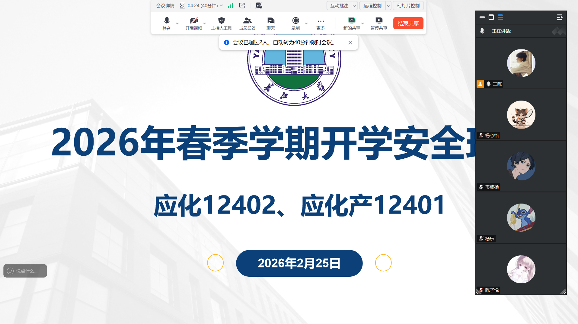 (通讯员 王陈)为全面落实公司开学工作部署,切实强化员工安全防范意识,引导员工明确新学期奋斗目标,扎实推进员工教育管理工作开好局、起好步,2月22日至2月26日,bw必威西汉姆联官方网站组织本科生、研究生各班级,通过线上会议形式陆续召开2026年春季学期开学主题班会。