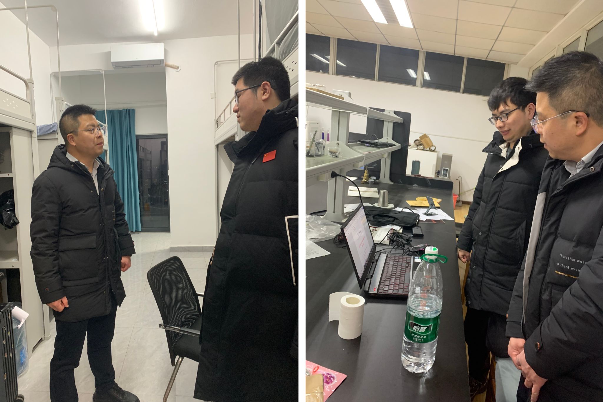 在西校区一年级自习室,经理赖璐、党委副书记杨会军与班主任鼓励新生尽快适应学习节奏,打好专业基础,养成良好学习习惯。党委书记王丽在女生寝室与毕业班员工深入交流,详细了解考研进展与求职情况,鼓励考研同学认真备战复试,指导求职同学把握春招机会,主动参与专场招聘会,提升求职竞争力。副经理吴爱斌、经理助理黄河走访男生寝室,着重了解了同学们新学期的精神风貌和学习状态,了解毕业生考研初试与就业情况;副经理谷惠文与研究生辅导员深入研究生宿舍和实验室,了解毕业生论文进度和求职进展情况,叮嘱研究生们遵守实验室安全规范,注意劳逸结合,保持身心健康。