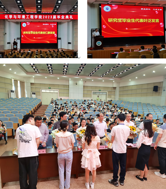 接下来,毕业生代表发言。本科毕业生代表吉仁静说“一千四百多个日夜承载着太多回忆,那些美丽的日子在回忆中熠熠生辉、闪闪发光。我们永远不会忘记在长大发生的点点滴滴,轻装策马轻云路,人生从此驭长风,感情深而文字短”。她讲述了自己大学四年的所见、所闻、所感,表达了对公司、公司的美好祝福。接着是研究生毕业生代表叶泛发言,“努力、勤奋、脚踏实地,才是成功的最佳捷径”在他的回忆中,入伍回来后无法进入学习状态,但他没有放弃,而是积极调整,考研成功上岸。叶泛以自身经历鼓励同学们不要放弃,要持之以恒。
