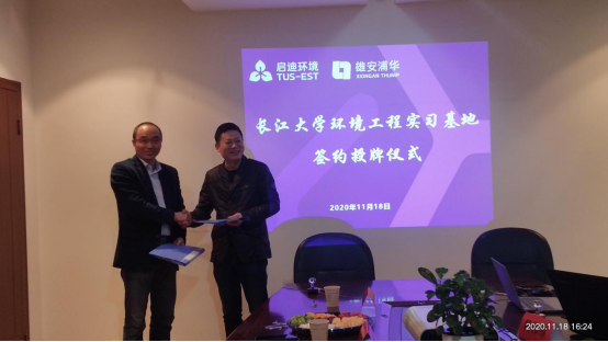 11月18日下午,在荆清水务二楼会议室召开了bw必威西汉姆联官方网站环境工程专业实习基地签约授牌仪式。签约仪式由荆清水务综合办公室主任王林栎主持,出席的有环工系主任魏平方、戴捷教授、荆清水务副总经理何中新、戈志诚、陈纬维等。
