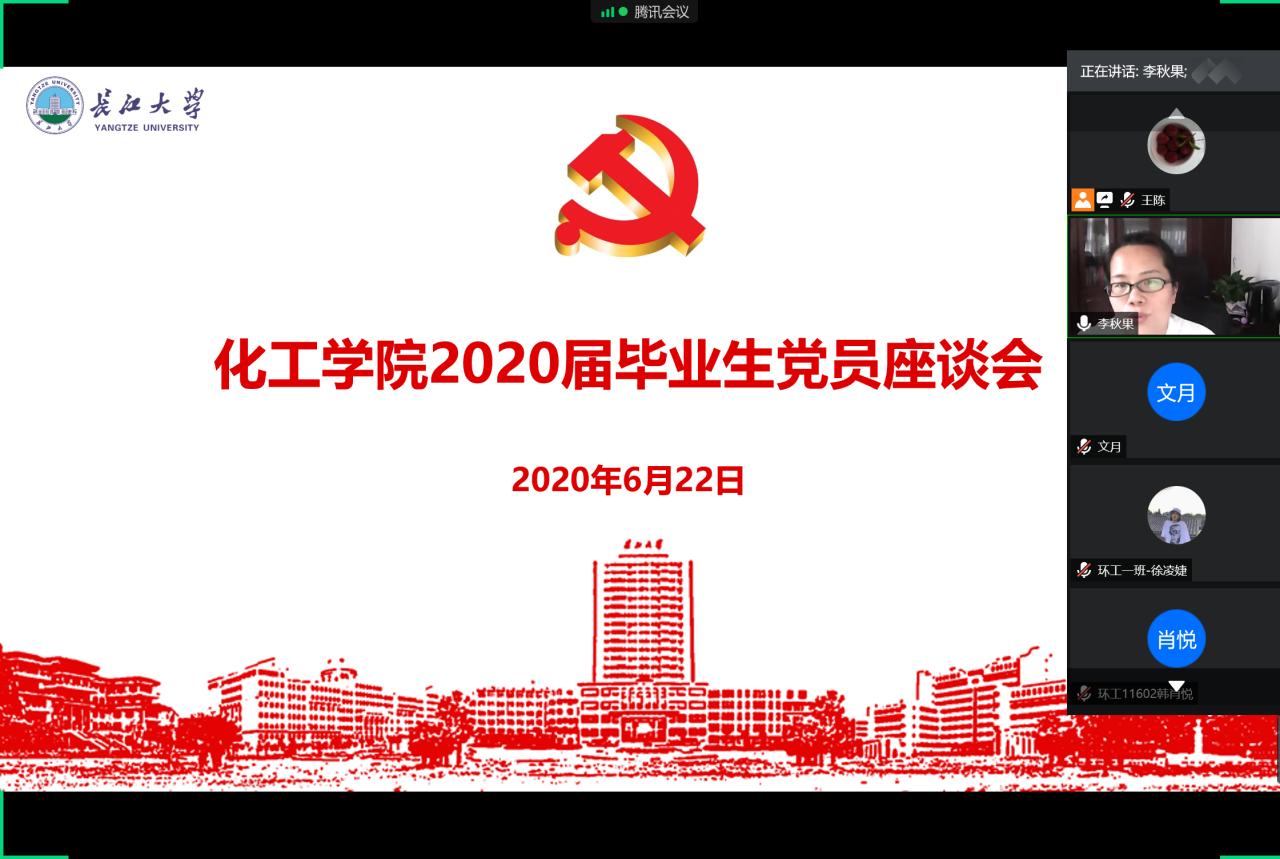 (通讯员 郭先哲 王陈)“不忘铮铮誓言,牢记初心使命”, 6月22日下午,bw必威西汉姆联官方网站党委于腾讯会议召开2020届毕业生党员线上座谈会。公司党委书记刘桂生,副书记李秋果,党委委员、副经理黄河,党委委员、化工系主任石东坡,全体员工党支部书记及47名毕业生党员参加座谈。公司党委副书记、本科生第一党支部书记李秋果同志主持会议。