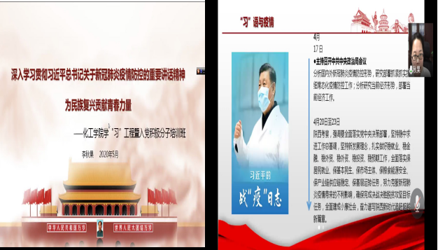 为深入学习贯彻习近平总书记关于新冠肺炎疫情防控的重要讲话精神。2020年5月19号晚7点,公司于腾讯会议开展化工学习工程暨入党积极分子培训。出席本次会议的有公司党委副书记李秋果、学工办主任刘敬敏、辅导员王陈、员工干部、预备党员、入党发展对象、入党积极分子等。