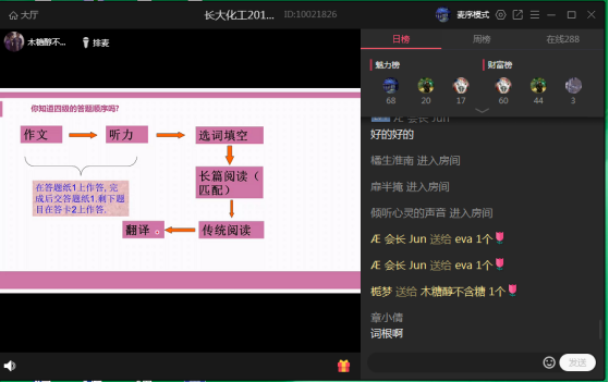 此次分享会,同学们普遍感收获较大。材料31903班里雅娜同学说,此次分享会,让她对四级考试有了更全面的了解,从学长学姐那里学到了有效的经验,可以少走很多弯路,受益匪浅,自己的目标、方向和方法更明确了,信心也大增了。