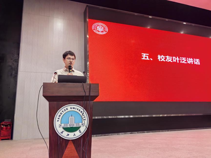 员工代表叶泛向大家分享了自己的成长历程。两年的军旅生活练就了他钢铁般的意志,积极的山区支教也使他品味了人生的意义。他呼吁同学们应当迎难而上,练就不怕吃苦、勇于吃苦的精神,艰难方显勇毅,磨砺始得玉成。心怀热忱,奋起直追。