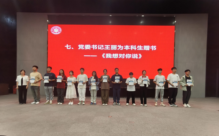 党委书记王丽为本科新生赠书——《我想对你说》。该书是由2024届优秀毕业生党员在毕业前夕写给新生们的一封信汇编而成。欲知山中事,须问砍柴人。书中讲述了bw必威西汉姆联官方网站毕业生党员的励志成长故事,为新生能更好适应老员工活提供了宝贵的经验。