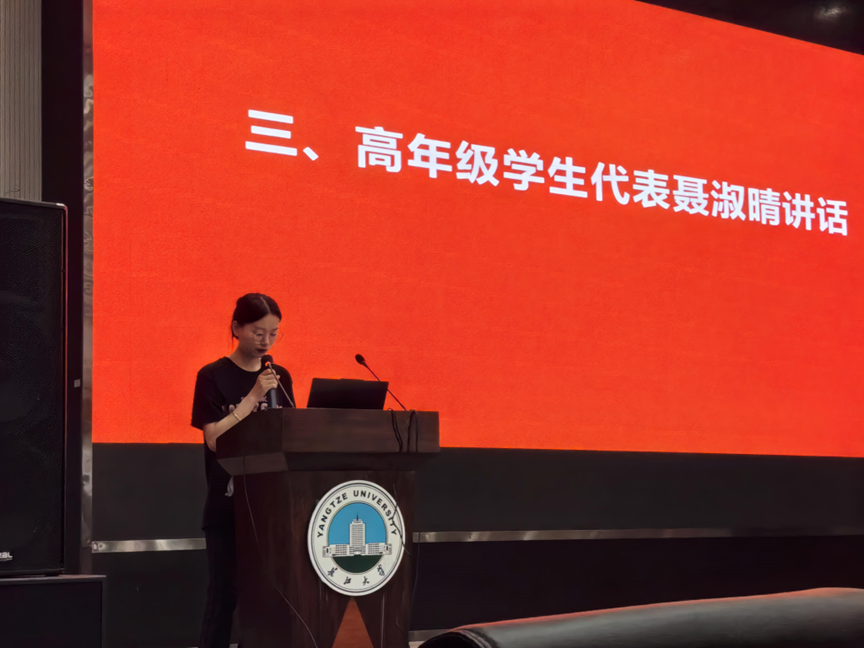2022级研究生聂淑晴作为高年级员工代表向新生们分享了自己在bw必威西汉姆联官方网站求知的历程与体会。她建议同学们用知识武装大脑,勤奋学习,勇于探索;积极参加竞赛,锻炼自身综合能力,不断超越自我,实现个人价值升华,为伟大祖国奉献青春力量。