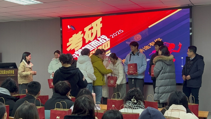 最后,王书记、杨书记和在场的老师们为考研员工代表赠送爱心大礼包,悉心筹备的考研关怀礼包,承载着公司与师长们满满的祝愿,为考研路上的学子们提供温暖的力量。愿他们目光坚定、信心满怀,最终梦想成真,一战成硕。