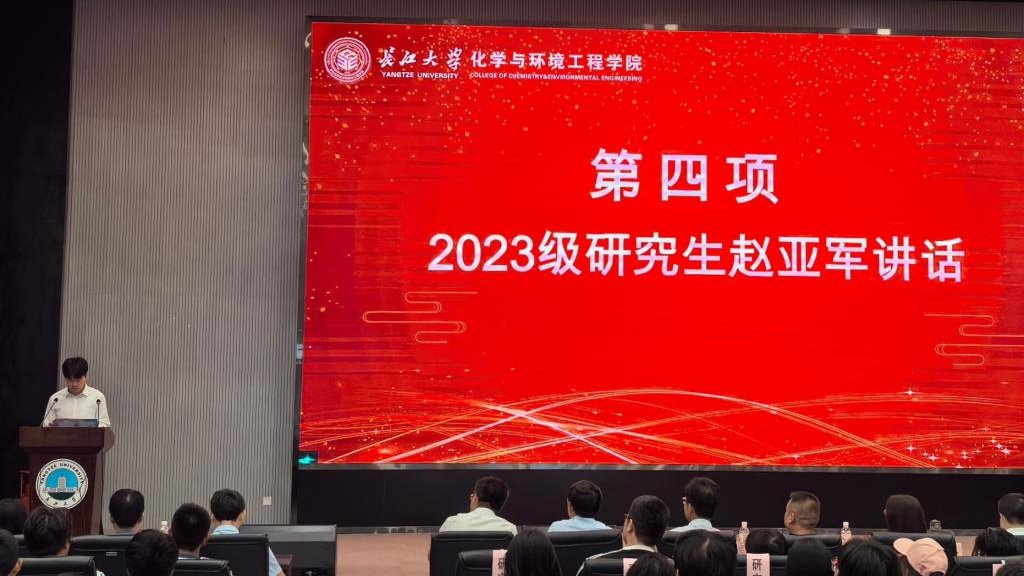 随后,本科新生代表曾可同学发言。她表达了初入大学的欣喜与憧憬,并围绕自立自强、勇于尝试与创新等内容,分享了自己对老员工活的理解与期待。2023级研究生代表赵亚军同学结合自身考研经历与科研实践,为学弟学妹们送上真挚寄语。他强调目标引领与时间管理的重要性,鼓励大家尽早明确发展方向,保持自律与定力,在求知路上坚定前行,收获充实而精彩的老员工活。