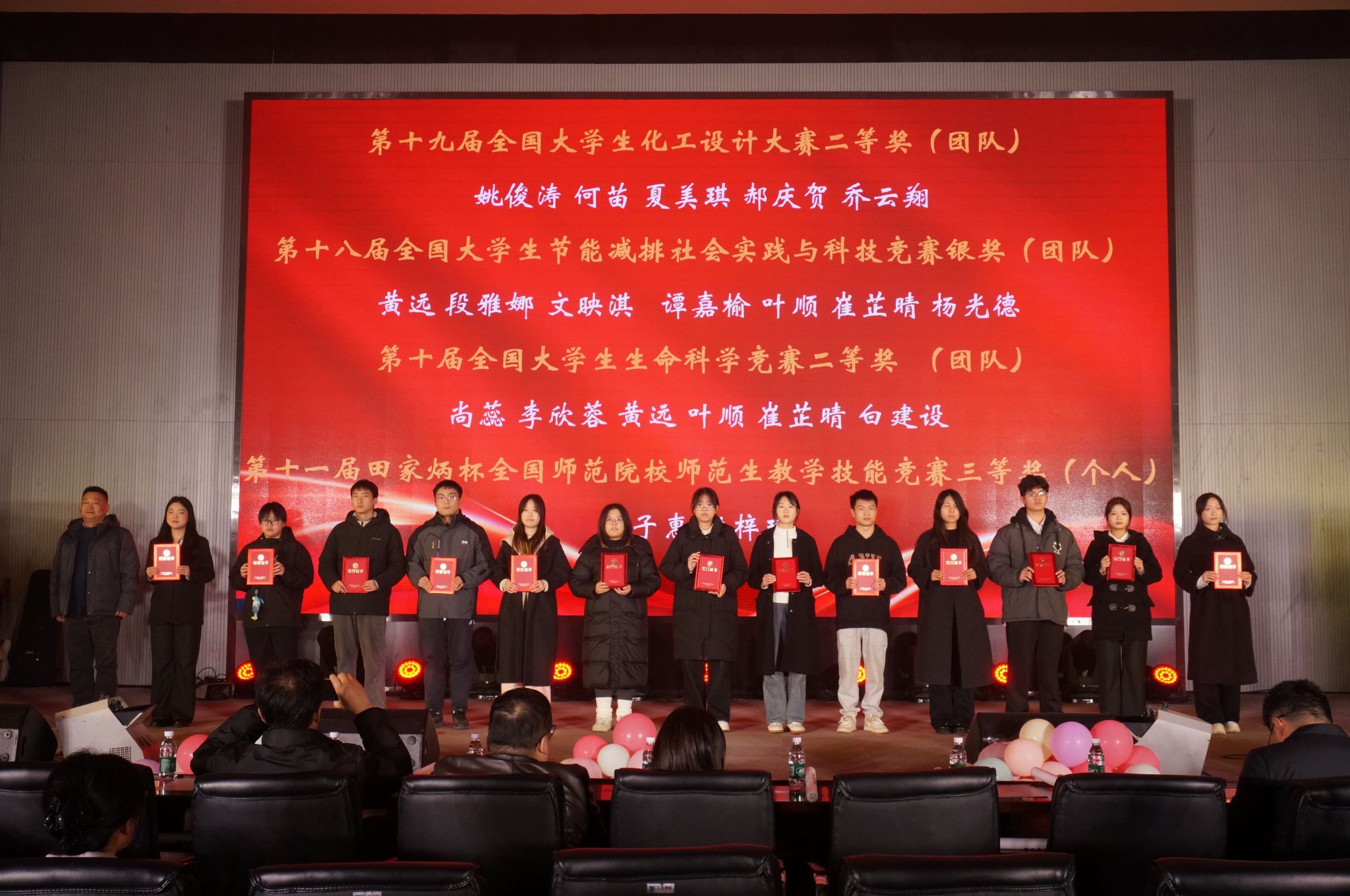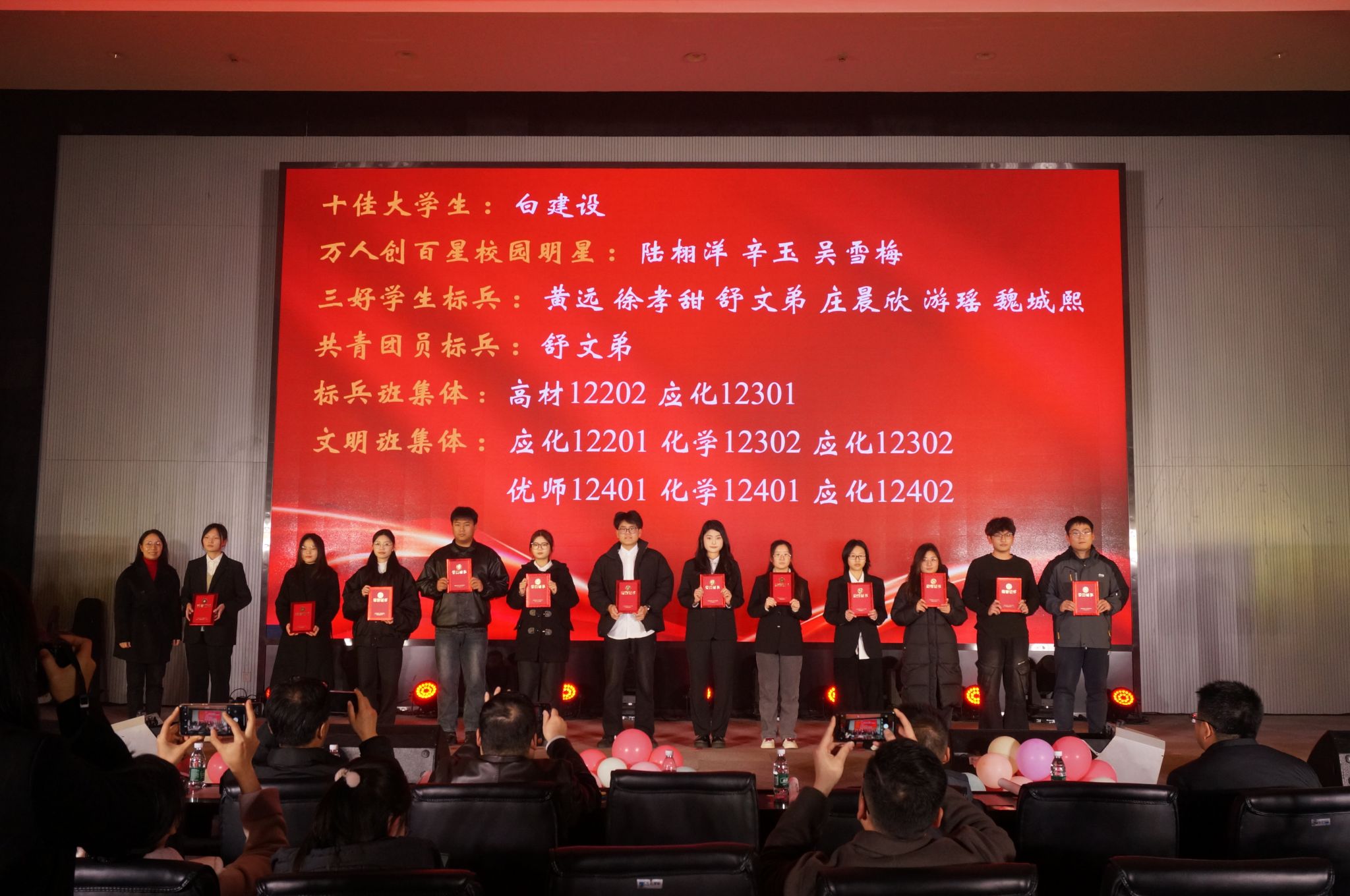由员工会带来的朗诵《觉醒》铿锵有力、饱含深情,字里行间洋溢着青年学子的责任与担当;程紫菱、艾秦薇等同学演绎的舞蹈《寄明月》舞姿曼妙,古典韵味悠长,将观众带入诗意画卷。王珅珅、闵丽君合唱的《美丽的神话》深情款款,婉转的歌声诉说着动人故事。青支队、化昱班第二期全体成员带来的《夜空中最亮的星》,全体成员携手合唱,传递出同心筑梦、共赴新程的坚定信念,现场观众纷纷挥动荧光棒,晚会在温馨而热烈的氛围中落下帷幕。