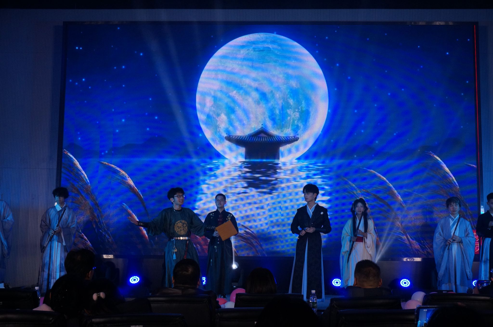 由不晚乐队、东校区器乐部与笛箫协会跨界合作的歌曲《霍元甲》,将传统民乐与现代摇滚元素巧妙融合,刚劲有力的节奏震撼人心;张健禹、苏乘玮带来的歌曲《可惜没如果》旋律悠扬,婉转的乐声传递出细腻的情感。宋明易、张文佳等同学表演的舞蹈《armageddon》极具张力,展现出青春的蓬勃朝气;优师32501班、化学32501班呈现的情景剧《白雪公主和七个大高个》创意十足,幽默的剧情、生动的表演引得全场捧腹,为晚会增添了诸多欢乐。各节目参演人员共同唱响《西楼别序》,歌声婉转悠扬,余韵悠长。