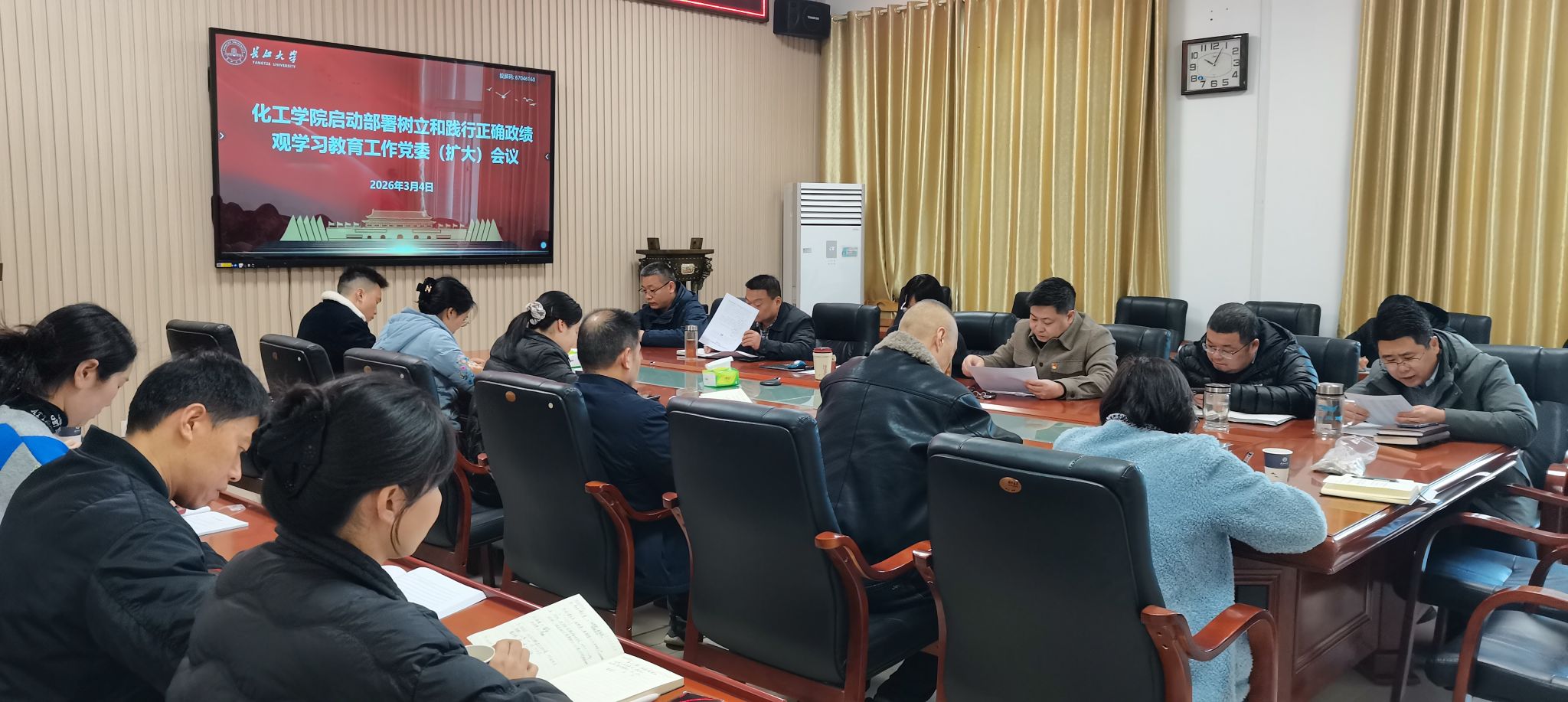 在围绕“如何树立和践行正确政绩观”主题的研讨交流环节,与会人员结合岗位实际畅所欲言。副经理肖围强调,教师在人才培养与科学研究中应坚持实事求是,摒弃花架子,注重工作实效;杨会军提出,要紧紧围绕公司发展指标开展工作,直面员工教育管理中的痛点难点,切实解决学风等突出问题;党委委员石东坡呼吁高校教师回归教育本质,坚持以员工发展为中心,通过深化教学创新,统筹抓好员工心理健康关怀与公司产品质量提升;教工第二党支部书记张春燕表示,教师要坚守为党育人、为国育才的初心,坚定信念,在提升教学质量的同时严守学术诚信;教学办主任张文杰则从管理服务角度出发,提出要为师生谋幸福,科学干事,积极引导教师利用“雨课堂”等数字化手段,不断提升教学实效。
