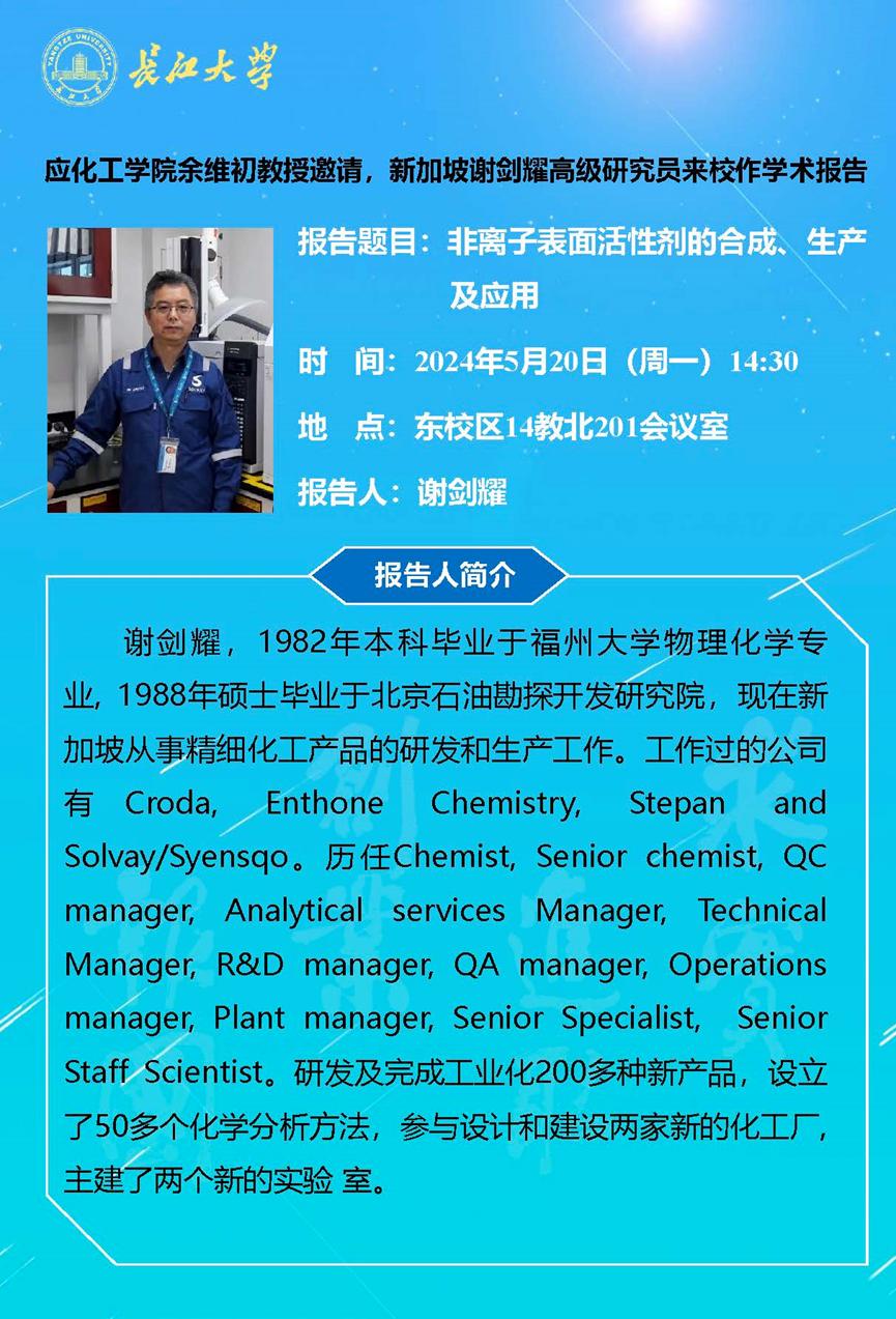 长江化工讲坛:非离子表面活性剂的合成、生产及应用