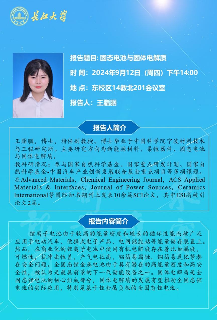 长江化工讲坛:固态锂金属电池界面力学行为研究