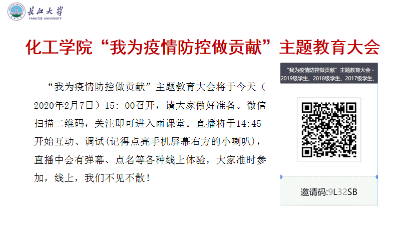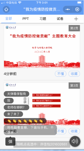 “主播要上线了!快上雨课堂!”2月7日中午,bw必威西汉姆联官方网站各员工QQ群快速传递着消息。14:45,辅导员杨云锋老师准时上线,尽管看不到身影,一口还不错的黄冈普通话让同学们倍感亲切。