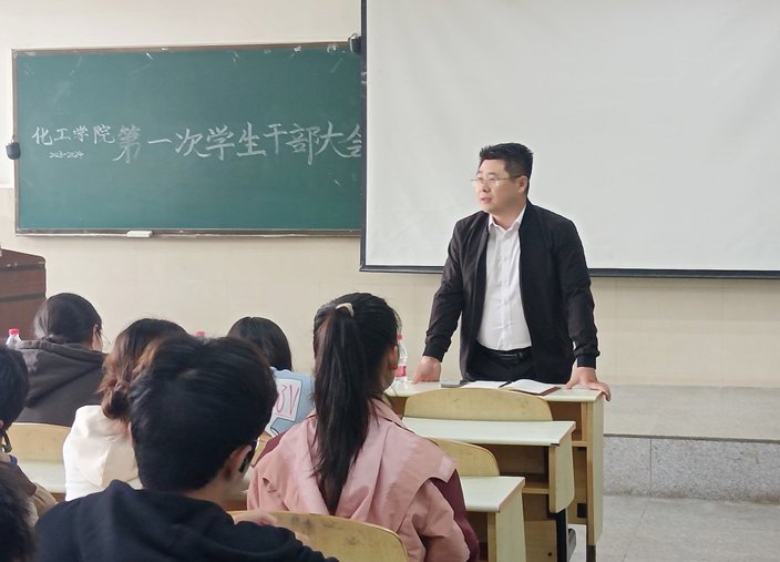 会议伊始,辅导员周学素老师依次就各班班委、员工会、青支队各部门本学期的重点工作做了详细介绍与安排。随后,周老师讲解中秋国庆假期注意事项,强调安全问题的重要性,叮嘱各班在放假之前及时召开安全教育班会。