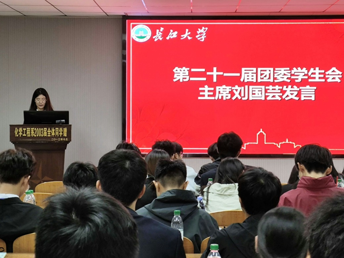 (通讯员 王梦睿)10121900,公司第二十一届团委员工会换届大会于东校区14教北201召开。公司党委副书记杨会军,辅导员王陈、周学素,兼职辅导员余海涛及公司第二十届、第二十一届团委员工会全体成员参加此次大会,会议由化工32406班白晓瑞主持。